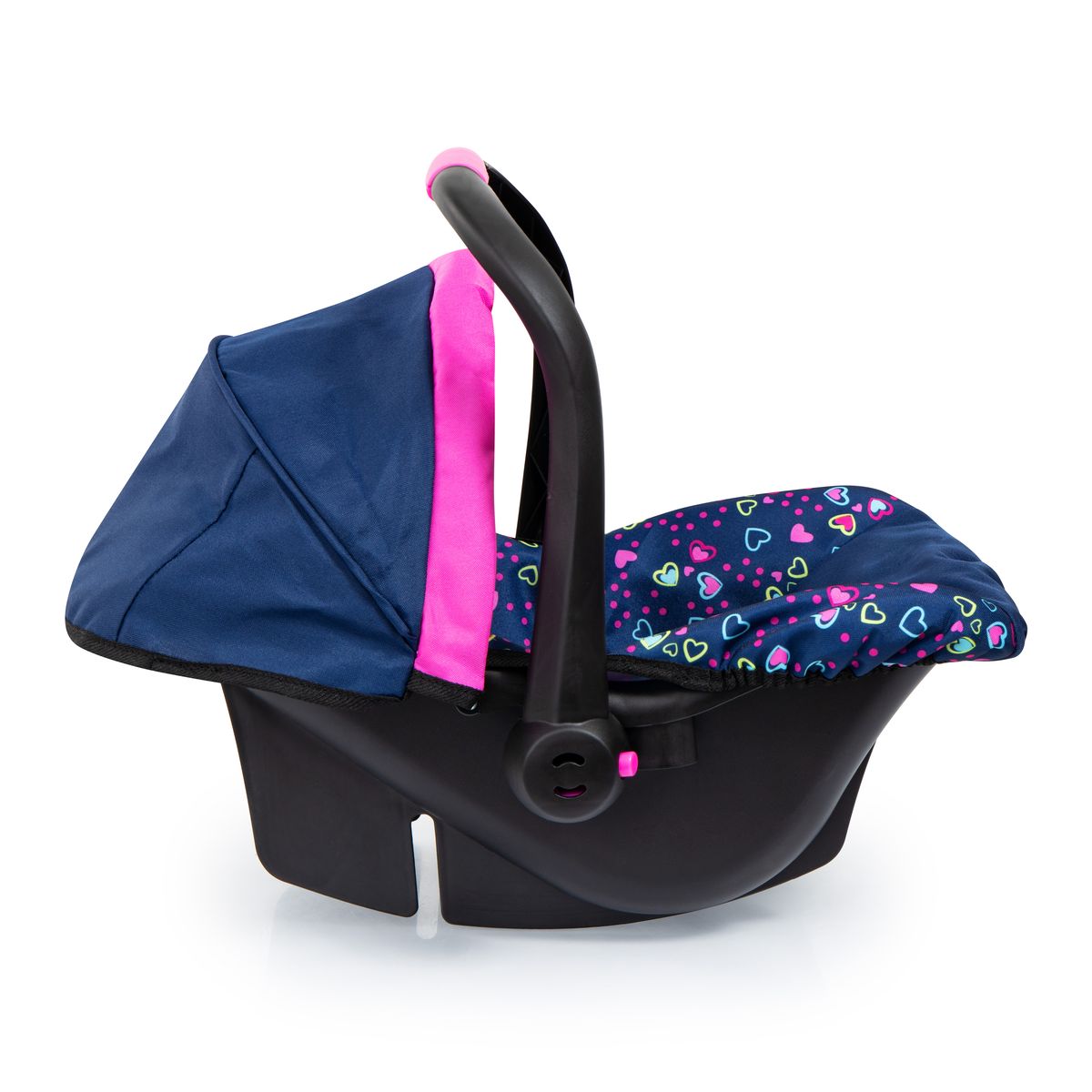 Dzięki temu nowoczesnemu fotelikowi samochodowemu w bardzo modnym kolorze pokochasz każdą jazdę samochodem! Piękny fotelik samochodowy nadaje się dla lalek do 46 cm. Dzięki miękkiej tkaninie oraz osłonie przeciwsłonecznej lalka lub pluszowa zabawka siedzą bardzo wygodnie i są chronione przed słońcem i wiatrem na twarzy. Dzięki zintegrowanemu pasowi bezpieczeństwa twoje "małe kochanie" dotrze bezpiecznie do celu, a w trakcie podróży może słodko śnić. Ergonomiczny uchwyt jest wygodny do przenoszenia, dzięki czemu lalka czy pluszowa zabawka mogą być zabierane wszędzie, gdzie chcesz. Wymiary (cm): 42 x 33 x 37.