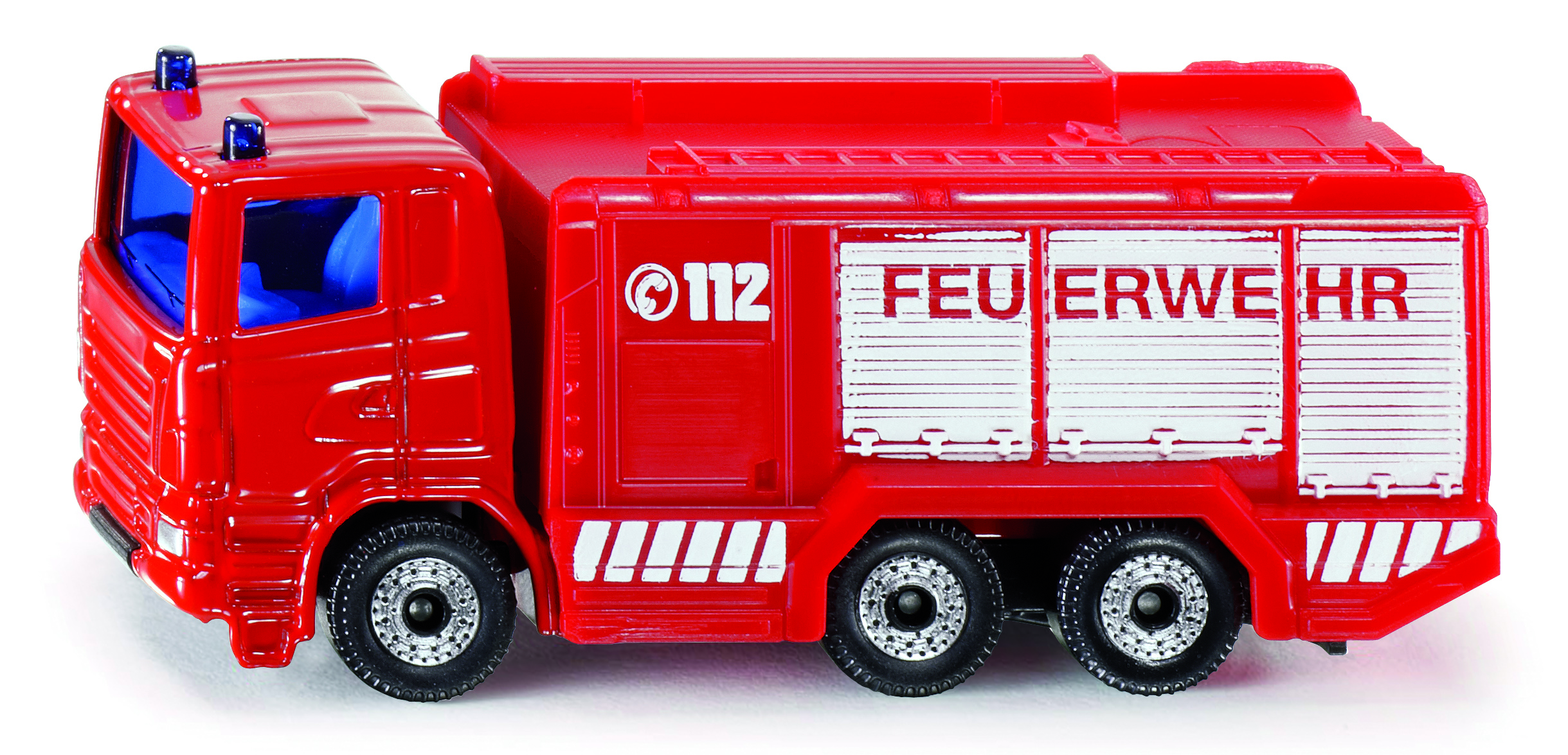 Wóz strażacki z pompą, który zawsze chętnie przyjedzie z pomocą. Pożar, kot w opałach? Wezwij wóz strażacki marki Siku!