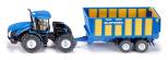 Realistycznie wykonany model ciągnika marki New Holland. Ciągnik posiada zaczep umożliwiający perfekcyjne manewrowanie przyczepą. Przyczepa jest kompatybilna z innymi modelami SIKU Farmer oraz SIKU Super.