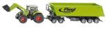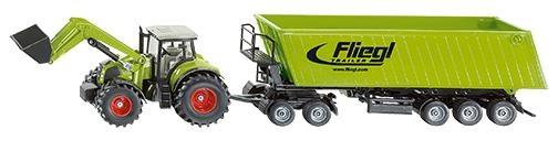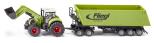 Zestaw składający się z ciągnika z ładowarką i wywrotki. Ciągnik marki Claas Axion 850 z ładowarką ciągnie 3 osiową wywrotkę Dolly. Wywrotka Dolly może być łączona z dowolnymi ciągnikami z serii SIKU. Możliwość otwarcia tylnej klapy. Model metalowy z elementami plastikowymi. Bardzo starannie wykonany z dbałością o wszelkie szczegóły.