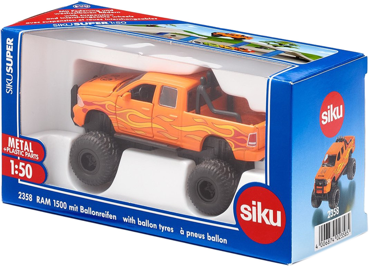 Do przestrzeni ładunkowej przymocowany jest również wspornik, na którym montowana jest jednostka oświetleniowa z czterema reflektorami. Korpus tego modelu Siku wykonany jest z metalu a maskę, drzwi i klapę bagażnika można otworzyć. Każda z jego osi jest indywidualnie resorowana, koła są wymienne. Ten model to niestandardowy wariant w jaskrawym pomarańczowym kolorze ze szczególnie grubymi i szerokimi oponami balonowymi i nadrukiem płomieni po obu stronach. Auto często można zobaczyć na amerykańskich autostradach.