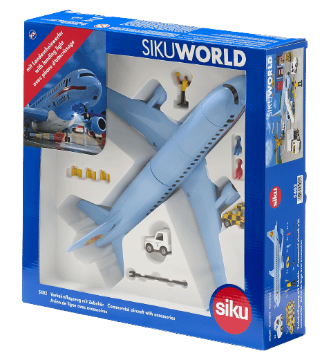 Obszerny samolot komercyjny z akcesoriami. Samolot z dwoma konkretnymi silnikami jest gotowy do startu. Załoga kabiny podciąga klapę dachową i przesuwa czterech pasażerów siedzących już, aby usadowili się na swych miejscach. Pod tylną klapą na dachu znajduje się schowek na nasz ulubiony samochód, który możemy wziąć ze sobą na wakacje. Samolot jest gotowy do startu.