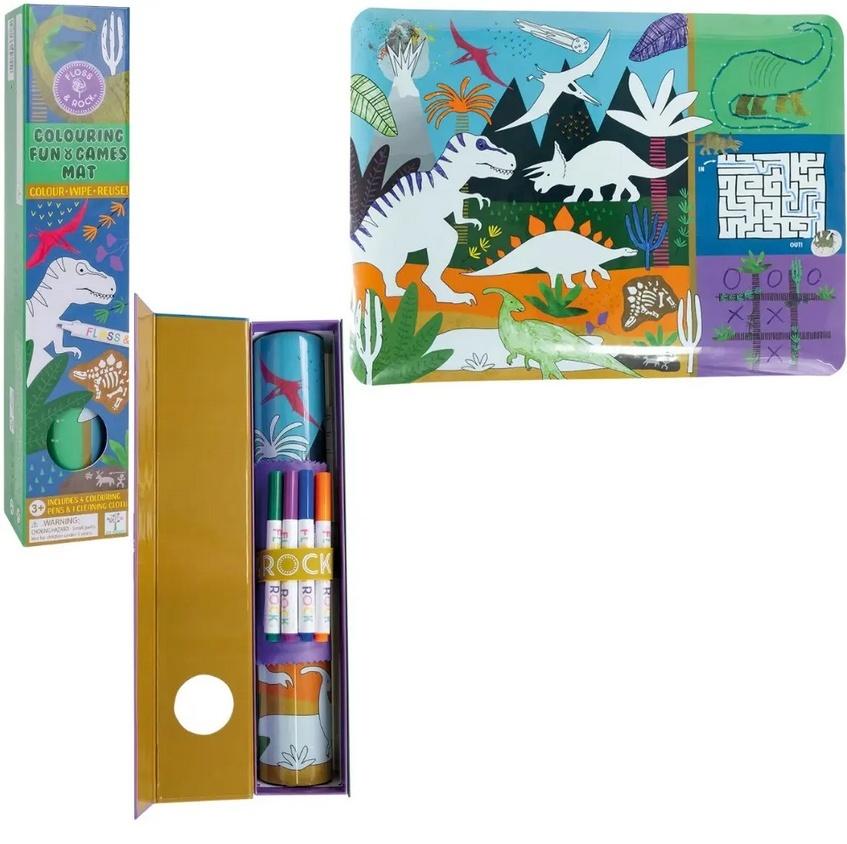Silikonowa mata do kolorowania, gier i zabaw to świetna, wielofunkcyjna rozrywka, idealna zarówno do domu, jak i na czas podróży. Wystarczy rozłożyć matę, by zanurzyć się w kolorowaniu, łączeniu kropek, pokonywaniu labiryntu czy grze w kółko i krzyżyk. Mata przedstawia wspaniałe dinozaury i dziki park jurajski. Zestaw zawiera 4 kolorowe pisaki suchościeralne oraz poręczną ściereczkę do czyszczenia. Po skończonej zabawie matę można łatwo wytrzeć, zwinąć, spiąć silikonową opaską i schować do praktycznego pudełka. Co najlepsze, matę można używać wielokrotnie!