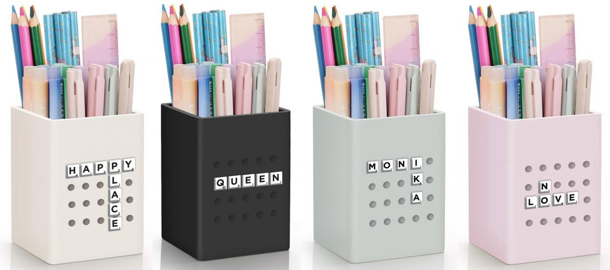 Funkcjonalny i kreatywny pojemnik na biurko SCRABLE to praktyczne rozwiązanie do przechowywania długopisów, ołówków, markerów i innych drobnych akcesoriów. Wykonany z elastycznego silikonu, jest trwały, lekki i odporny na codzienne użytkowanie.nWyjątkowym elementem jest przednia ścianka z wypustkami oraz dołączone literki, które pozwalają tworzyć własne napisy i personalizować pojemnik według własnego pomysłu. Dzięki temu możesz nadać mu indywidualny charakter i dopasować do swojego stylu.nCechy produktu:nwykonany z elastycznego silikonunmożliwość personalizacji za pomocą litereknidealny na długopisy, ołówki i akcesoria biurowenstabilna, kompaktowa formannowoczesny, minimalistyczny designndostępny w różnych kolorachnPraktyczny organizer, który łączy porządek z kreatywną zabawą - idealny do szkoły, biura i pokoju młodzieżowego.