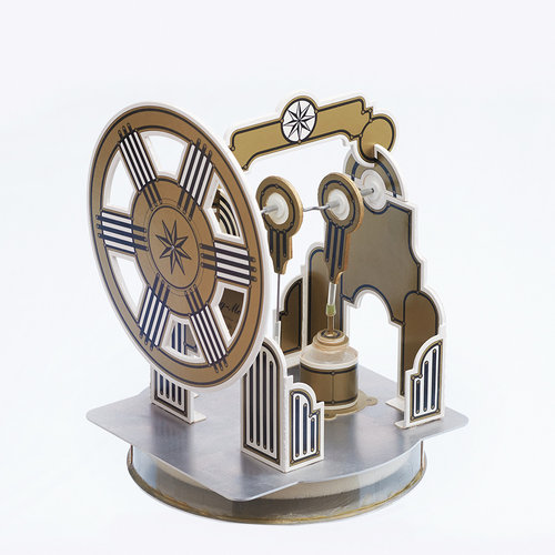 Na początku XX w. na świecie działało około 250 000 silników Stirlinga napędzając wentylatory biurkowe, pompy wody, małe pojazdy oraz dostarczając energię mechaniczną do gospodarstw domowych i warsztatów. Silniki spalinowe oraz elektryczne wyparły silniki Stirlinga z powszechnego użycia, ale możliwy jest ich powrót w roli cichego napędu w łodziach podwodnych czy prototypowych konstrukcjach sond kosmicznych. Opis: Solidna pięknie lakierowana tektura plus precyzyjnie wykonane akcesoria pozwolą Ci zbudować model silnika Stirlinga typu gamma, który postawiony na kubku gorącej herbaty może chodzić nawet godzinę, zadziwiając pół biura. Sztancowany karton pozwala na wyjęcie elementów bez wycinania. Rozmiar po złożeniu: ok. 160 x 126 x 126 mm Zawartość zestawu: 4 arkusze lakierowanego kartonu 0,5 mm zawierające elementy do budowy silnika; sztancowanie pozwala na wyjęcie elementów bez wycinania 2 laserowo wycinane arkusze aluminium o średnicy ok. 126 mm do budowy głównego cylindra 2 paski folii PVC grubości 0,5 mm do budowy głównego cylindra dwie mosiężne i jedna silikonowa rurka 1 lateksowa rękawiczka dysk pianki 113 x 8 mm do budowy tłoka 4 elementy z odpowiednio ukształtowanego drutu 4 duże i 8 małych tarcz łożyskowych z PCV polskojęzyczna instrukcja