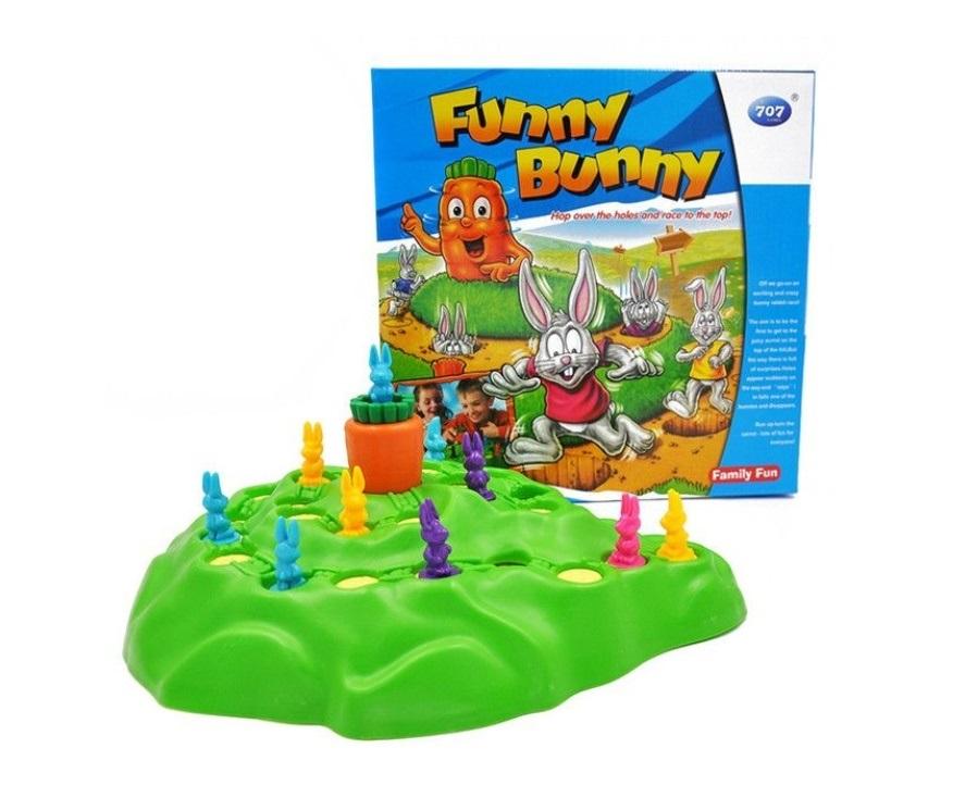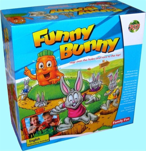 Gra w wyścig zajączków trwa! Wylosuj kartę i przesuń się o tyle miejsc ile jest na karcie lub gdy wylosujesz kartę z marchewką - przekręć marchewkę na planszy, a wtedy niektóre pola na planszy otwierają się, a króliczki na nich stojące wpadają do środka i muszą zaczynać wyścig od samego początku. 5-10 lat 2-4 graczy
