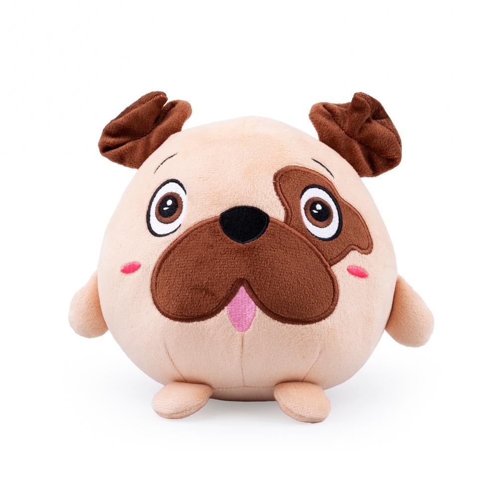 Skaczący wesołek potrafi rozbawić nawet ponuraka! Ten uroczy psiak to zabawna piłeczka, która po podrzuceniu lub rzuceniu jej na podłogę zaczyna podskakiwać, przemieszczając się. Czynności tej towarzyszą zabawne zwroty, dodatkowo aktywizujące maluszka, oraz wesołe melodie. W momentach bezczynności zabawka przechodzi w tryb nagrywania, powtarzając zmienionym głosem to, co usłyszy. Aby uruchomić zabawkę, należy odpiąć rzep, i nacisnąć żółty przycisk, znajdujący się na plastikowej piłce, wewnątrz zwierzaka. Piłeczkę tę można wyjąć, w celu wymiany baterii lub wyprania pluszowego zwierzaka.