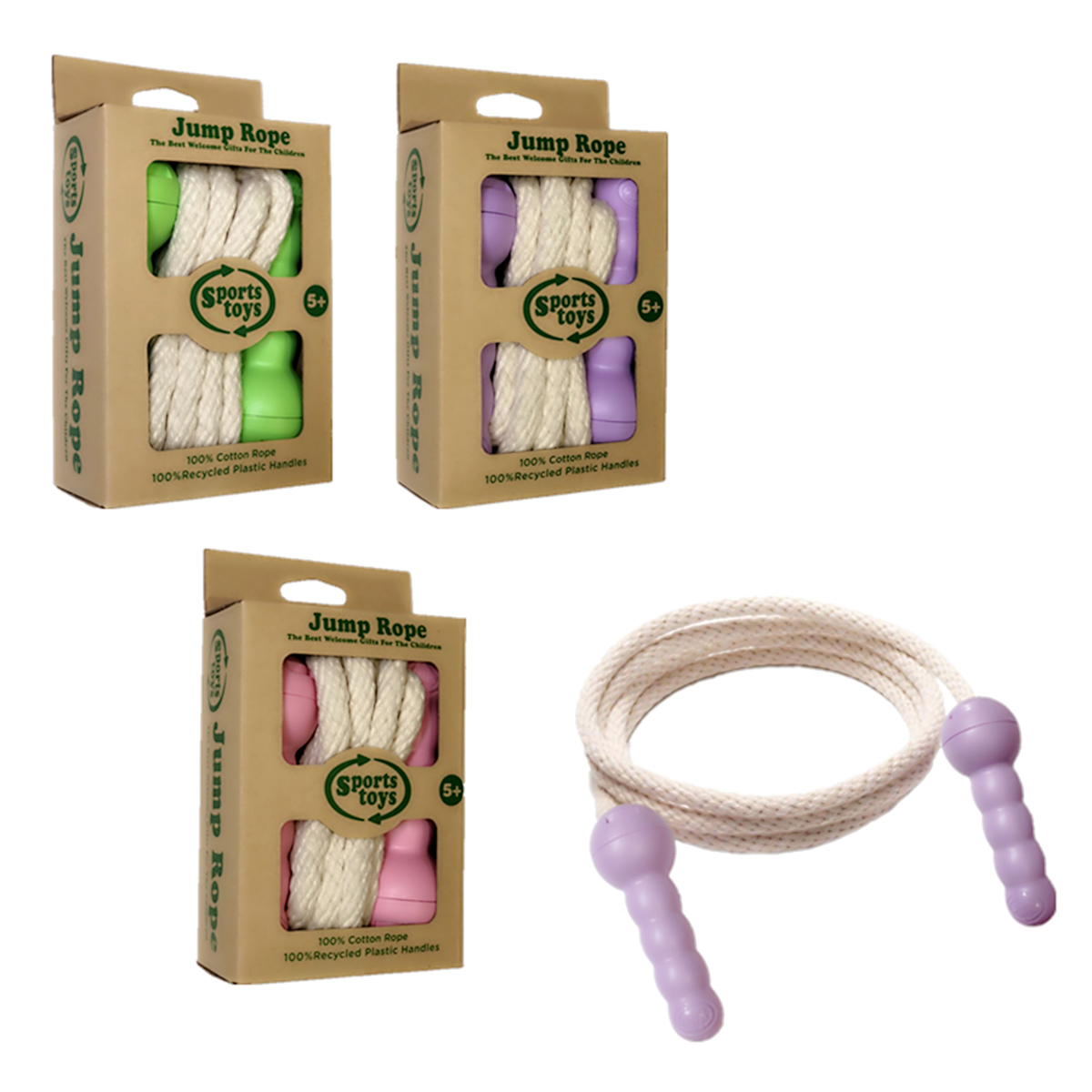 Skakanka z bawełnianym sznurkiem i plastikowymi rączkami.