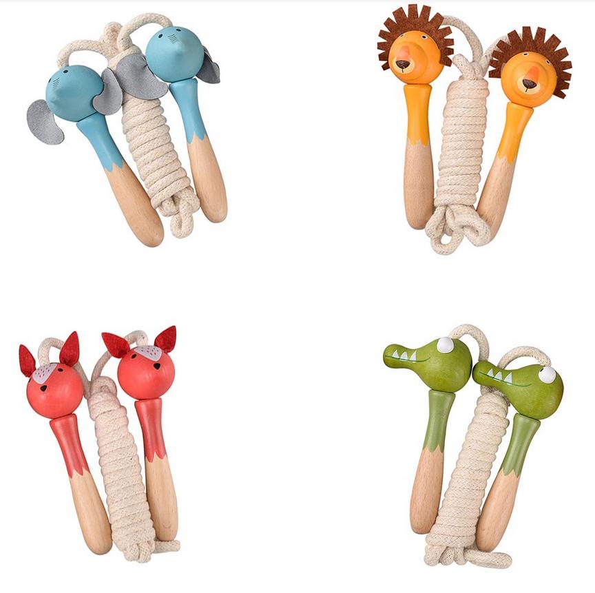 Każda skakanka ma rękojeść wykonaną z lakierowanego drewna w kształcie zwierzątka oraz biały sznurek.