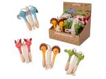 Kolorowe skakanki z drewnianymi rączkami w kształcie wesołych zwierząt zachęcą do aktywności ruchowej i poprawy kondycji.