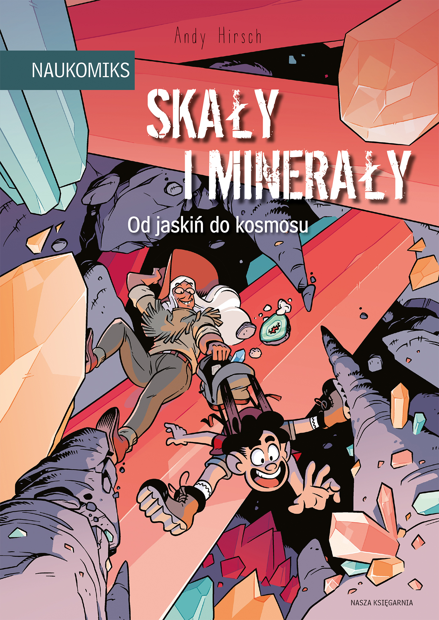 Przygotuj się do badania głębin oceanów, dalekiego kosmosu i wszystkiego po drodze! Krwiożercze rekiny, skomplikowane roboty, upierzone welociraptory i dużo więcej czeka na ciebie w Naukomiksach! Skąd się wzięła Ziemia? Czy mały strumyk może stworzyć Wielki Kanion? Ile to jest miliard? Odkryjcie niepowstrzymane siły, które ukształtowały nasz świat, i dowiedzcie się, jak będzie wyglądał w dalekiej przyszłości. Nie zapomnijcie tylko łopaty i latarki! Dołączcie do fana kryształów i jego idolki – badającej skały naukowczyni. Ta uwielbiająca przygody para eksploruje naszą planetę od środka i na powierzchni. Po drodze zmaga się z wulkanami, zapadliskami i kosmicznymi kolizjami, ale to wszystko w imię nauki, prawda? Dajcie się olśnić skałom i minerałom! Andy Hirsch stworzył kilka książek do serii „Naukomiks”. „Skały i minerały – od jaskiń do kosmosu” to kolejna po „Kotach” i „Psach” ukazująca się w języku polskim. Mieszka w Dallas w Teksasie. Powyższy opis pochodzi od wydawcy.