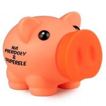 Wielkość świnki: 11,6 x 9 x 9 cm, ozdobiona zabawnym podpisem.
