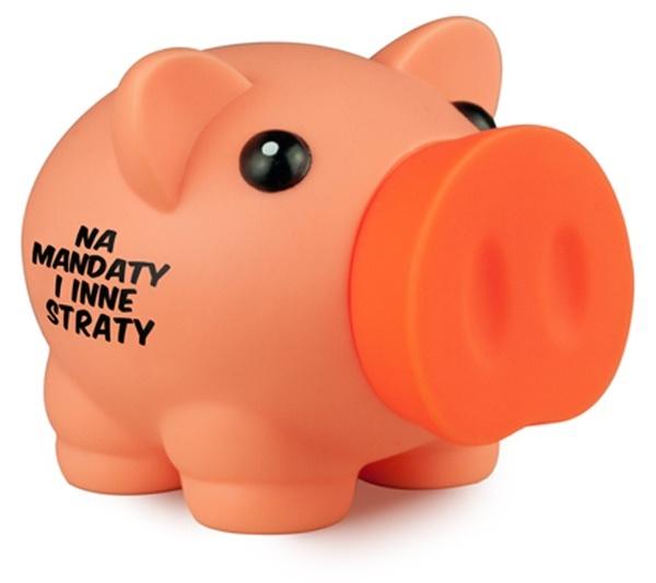 Wielkość świnki: 11,6 x 9 x 9 cm, ozdobiona zabawnym podpisem.