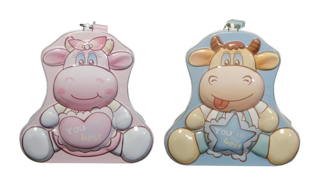 Kolorowe skarbonki dla dzieci z wizerunkiem krówki pomogą dzieciom odłożyć swoje pierwsze pieniądze i nauczą je oszczędzania. Produkt występuje w kilku wersjach kolorystycznych wybierany losowo. Cena dotyczy jednej sztuki. Produkt zapakowany jest w przezroczyste opakowanie. Skarbonka przeznaczona dla dzieci od 3 lat.