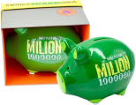 Skarbonka mała świnka SKM-007 "Mój pierwszy milion" Ceramiczna skarbonka w kształcie świnki to świetny pomysł na prezent. Świnki są kolorowe i ozdobione zabawnymi tekstami, świetnie się sprawdzą jako dekoracja pokoju. Cechy szczególne: Typ produktu: skarbonka na prezent, Materiał: ceramika Wys. świnki: 8,5 cm. Waga: 214 g Wymiary pudełka: 12,5 x 10 x 10 cm (dł x szer x wys) Opakowanie: kolorowy kartonik Okazja: ogólne życzenia, urodziny