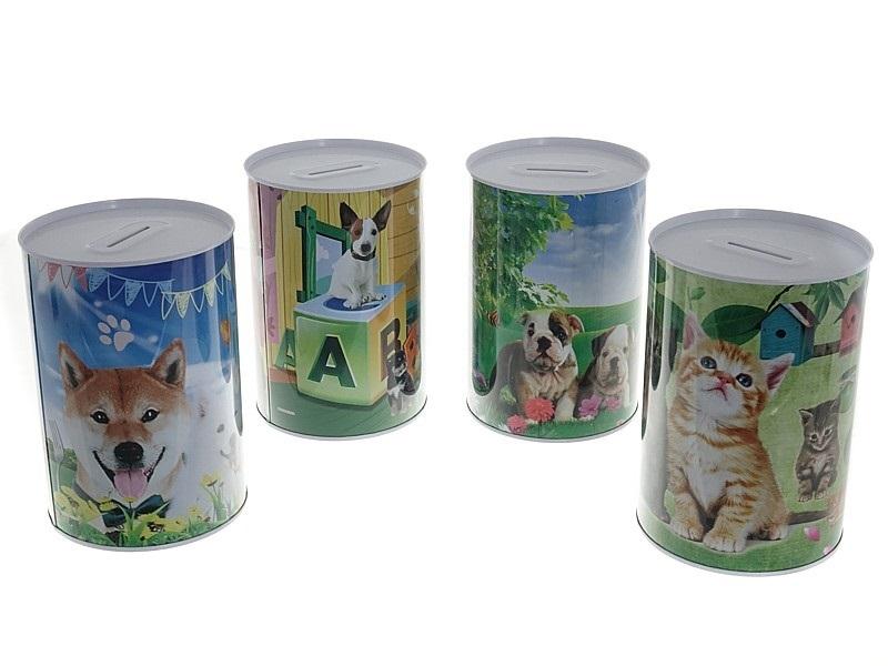 Skarbonka metalowa 14,5x10cm psy i koty MIX