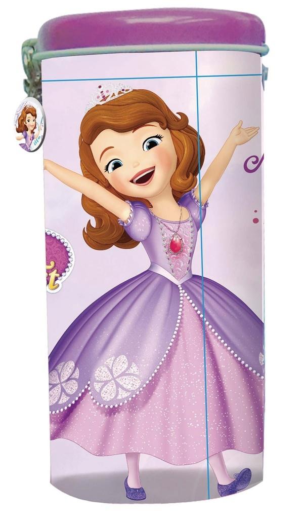 Metalowa puszka skarbonka zamykana na kłódkę, z kluczykiem. Z ukochaną przez wszystkie dziewczynki Księżniczką Zosią z bajki Jej Wysokość Zosia. Wymiary: 14,5 x 4 cm