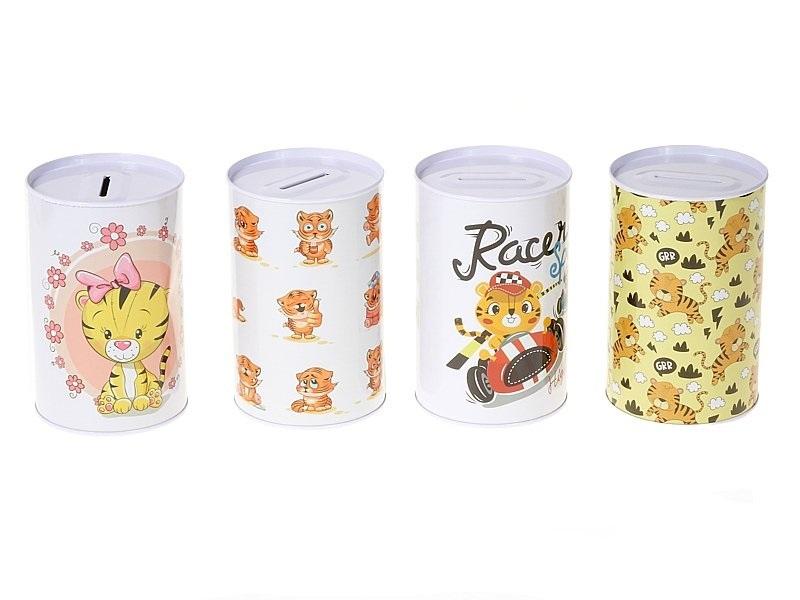 Opakowanie Skarbonka metalowa puszka Tygryski mix