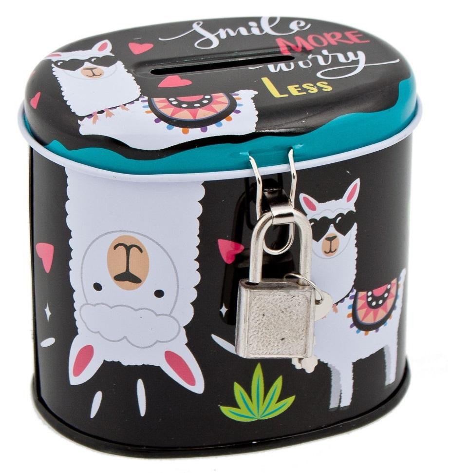 Opakowanie Skarbonka metalowa z kłódką owalna Lama