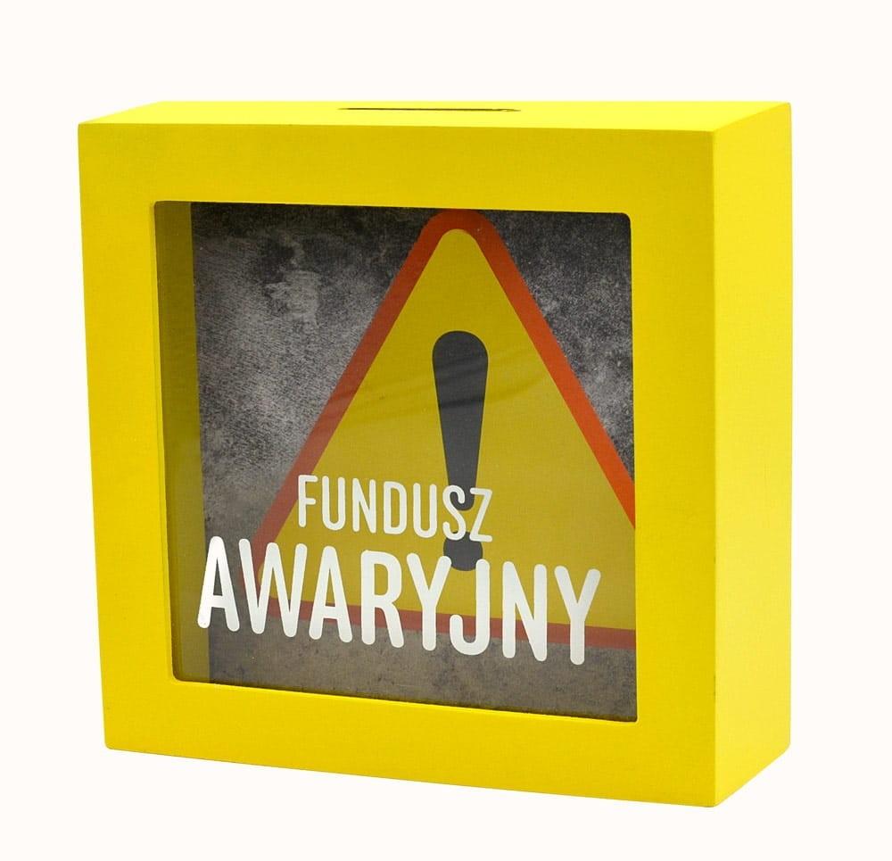 Skarbonka SKARBBOXY SBB-009 Fundusz awaryjny Skarbonka z serii SKARBBOXY to doskonały i niezwykły pomysł na prezent, który idealnie komponuje się w każdym wnętrzu, stanowiąc jednocześnie piękną dekorację. Wykonana z solidnej płyty MDF, skarbonka ta posiada specjalny otwór na górze do wrzucania monet i banknotów. Na szklanej szybce nadrukowany jest ciekawy napis pasujący do różnych okazji, a tło wewnątrz skarbonki zostało starannie zaprojektowane, prezentując przepiękną grafikę, podkreślającą wyjątkowy charakter skarbonki. Dzięki szklanej powierzchni można obserwować, jak skarbonka stopniowo wypełnia się oszczędnościami.. Tył skarbonki jest otwierany, umożliwiając wydobycie zgromadzonych środków na spełnienie jednych marzeń, jednocześnie zachęcając do oszczędzania na kolejne cele. Cechy szczególne: typ: skarbonka do postawienia, wielkość: 16 cm x 16cm, głębokość 5 cm okazja: ogólna