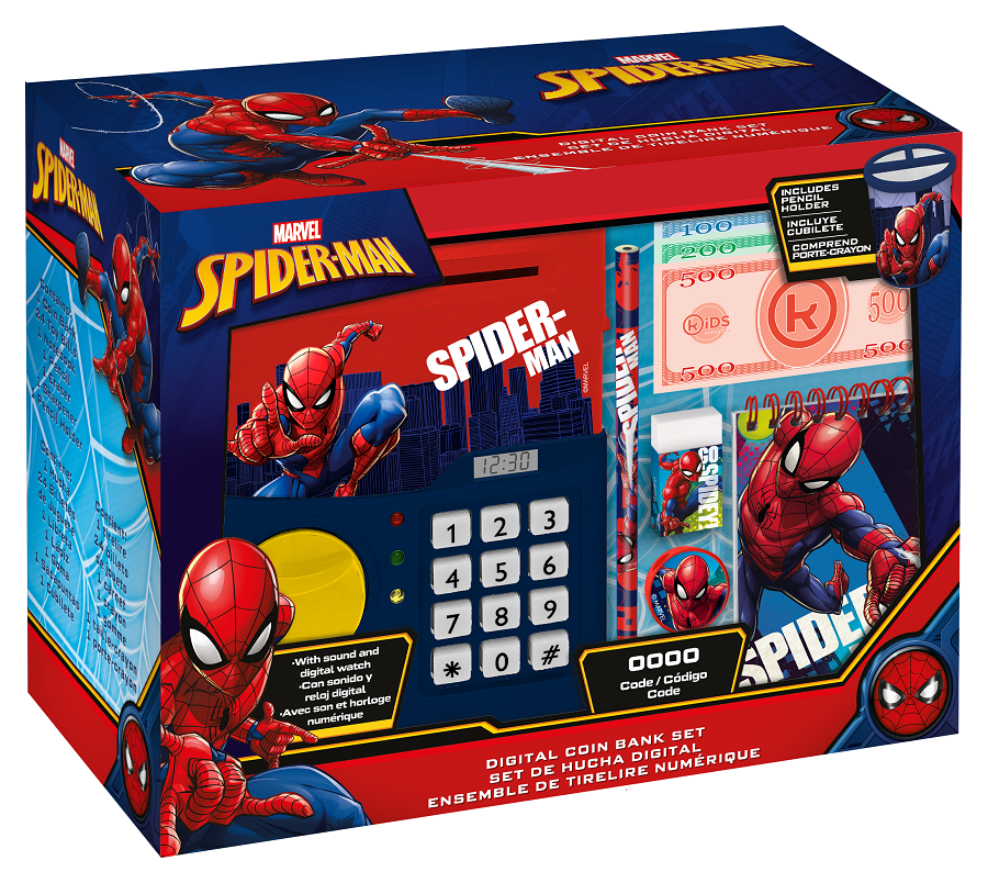 Skarbonka elektroniczna z motywem Spiderman wyjątkowo atrakcyjny prezent dla dziecka.