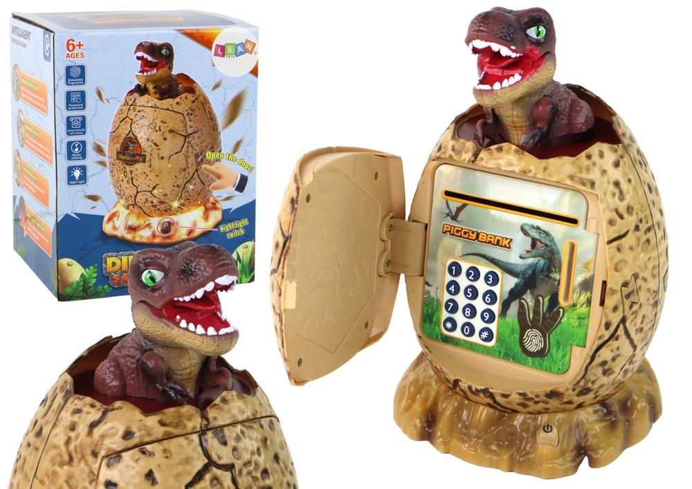 Jajo Skarbonka-Sejf Dinozaur Światło Dźwięki Przedstawiamy naszą niezwykłą Jajko Skarbonkę-Sejf, która łączy w sobie funkcję bezpiecznego przechowywania skarbów i fascynującą zabawę. To więcej niż zwykła skarbonka - to sejf, który kryje w sobie tajemnice i przygody. To jajko w kształcie sejfu, które może przechować Twoje najcenniejsze przedmioty i sekrety. Po otwarciu drzwiczek sejfu, zobaczysz klawiaturę numeryczną, na której możesz wpisać kod dostępu i użyć odcisku palca, aby otworzyć skarbiec. To nie tylko sposób na zabezpieczenie swoich skarbów, ale także nauka odpowiedzialności i dbałości o rzeczy osobiste. Skarbonka-Sejf wydaje dźwięki przy otwieraniu, co dodaje zabawie dodatkowego smaczku. Możesz cieszyć się tą chwilą ekscytacji, kiedy udaje się odblokować sejf. Dodatkowo, skarbonka jest podświetlana, co pozwala na oświetlenie jej w dowolnym momencie, tworząc atmosferę tajemniczości i eksploracji. W środku sejfu znajdziesz ukrytego dinozaura, który może zostać przymocowany na górze jajka, co daje efekt wykluwającego się dinozaura. To niesamowite zaskoczenie, które zachwyci każdego. Nasza Jajko Skarbonka-Sejf to nie tylko skarbiec na pieniądze, to także doskonały prezent dla dzieci, które uczą się wartości oszczędzania i odpowiedzialności. To również idealna zabawka dla tych, którzy uwielbiają tajemnice i eksplorację. Odkryj fascynujący świat skarbów i tajemnic razem z naszą Jajko Skarbonką-Sejf. Sprawdź naszą ofertę już teraz i zabezpiecz swoje skarby w niezwykły sposób! Wymiary opakowania: 21cm x 16,5cm x 16,5cm Wymiary jajka: 21cm x 16cm Posiada certyfikat CE, ponadto jest zgodny z normą EN71. Przeznaczony dla dzieci powyżej 6 roku życia.