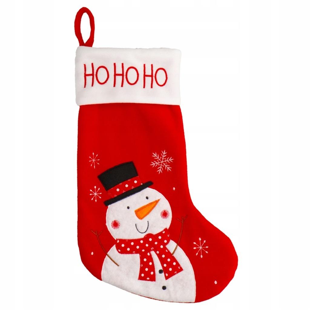 Dekoracyjna skarpeta świąteczna - but na prezenty. Wykonana z przyjemnego i miękkiego materiału. Górna część wykończona białym materiałem z wyszytym napisem. Z przodu tekstylna aplikacja. Bardzo gustowna i stylowa.