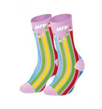 Skarpetki MFP w rozmiarze 37-41 zaskakują nie tylko przyjemnym w dotyku materiałem, ale także oryginalnym opakowaniem z nadrukiem w postaci kolorowych kredek. Są idealnym prezentem dla każdego, kto lubi praktyczne przedmioty z pomysłem i ceni wysoką jakość wykonania.
