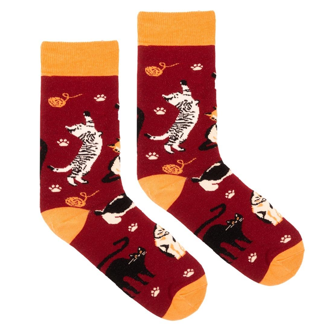 Skarpetki bawełna organiczna koty bordowe 36-41