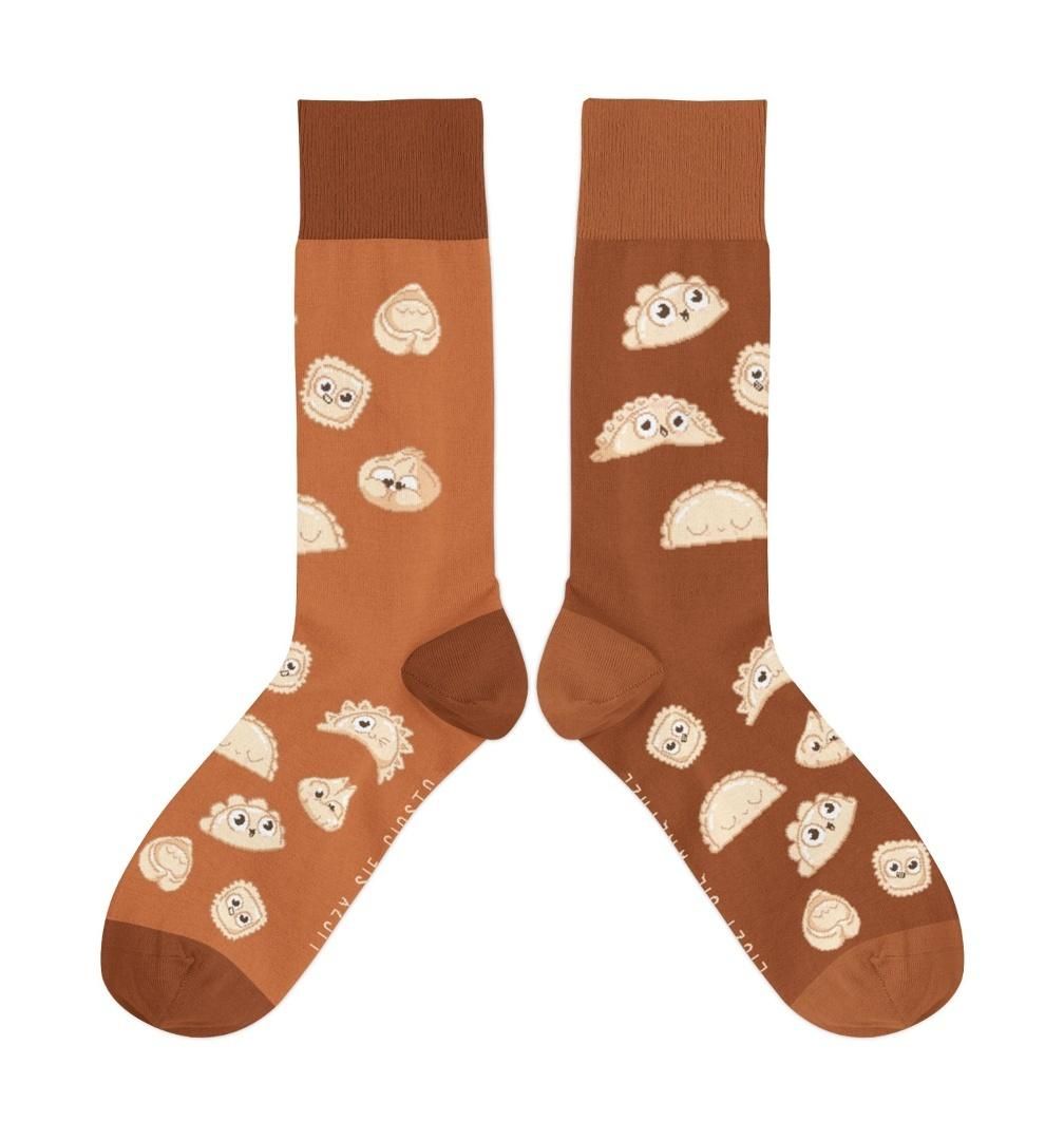 Pamiętajcie liczy się wnętrze! Dla miłośników pierogów i dobrego humoru! Te urocze skarpetki ozdobione pierogowymi bohaterami z zabawnymi minkami to idealny wybór na chłodne dni! Wyjątkowy design sprawia, że te skarpetki będą idealnym prezentem dla każdego fana kuchni polskiej lub oryginalnych dodatków. Wyraź swoją miłość do pierogów od stóp do głów - dosłownie! Życie jest za krótkie, żeby nosić nudne białe skarpetki Skład: 80% bawełna czesana, 15% poliamid, 5% elastan Wyprodukowane w Polsce Informacje dotyczące użytkowania: Prać wyłącznie ręcznie w temperaturze 30 stopni. Nie suszyć w suszarce bębnowej. Nie prasować. Nie wybielać. Nie czyścić chemicznie. Produkt nie jest przeznaczony do spożycia. Produkt nie nadaje się do kontaktu z żywnością. Nieodpowiedni dla dzieci poniżej 3 lat.