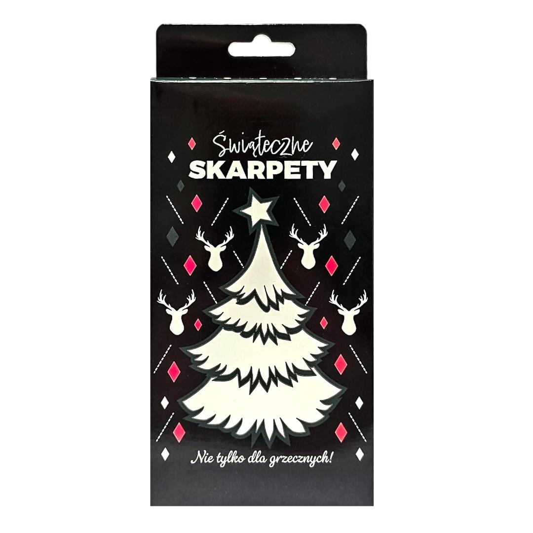 Skarpetki z motywem świątecznym w opakowaniu prezentowym.