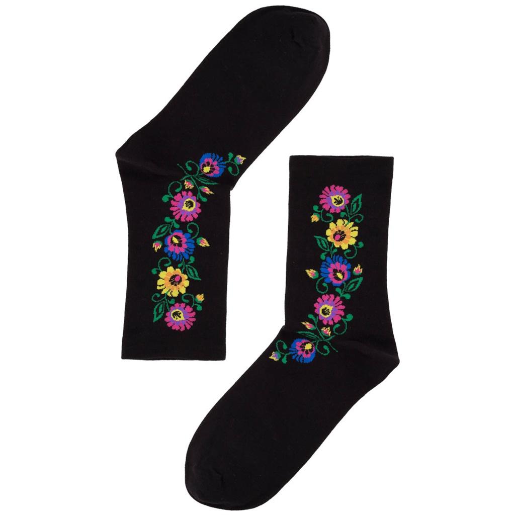 Skarpety damskie-roz. 35-37 kwiaty łowickie czarne