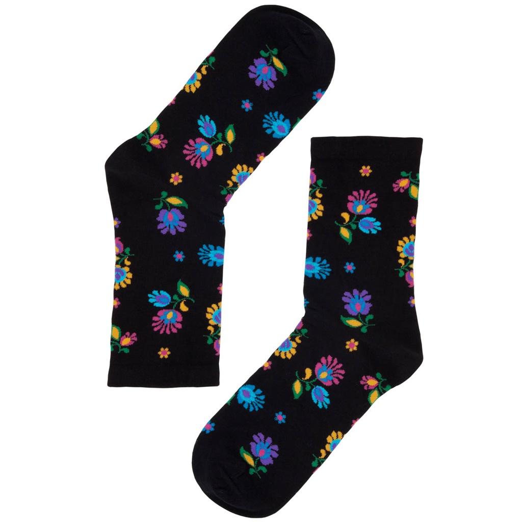 Skarpety damskie -roz.38-40 łowickie kwiaty czarne