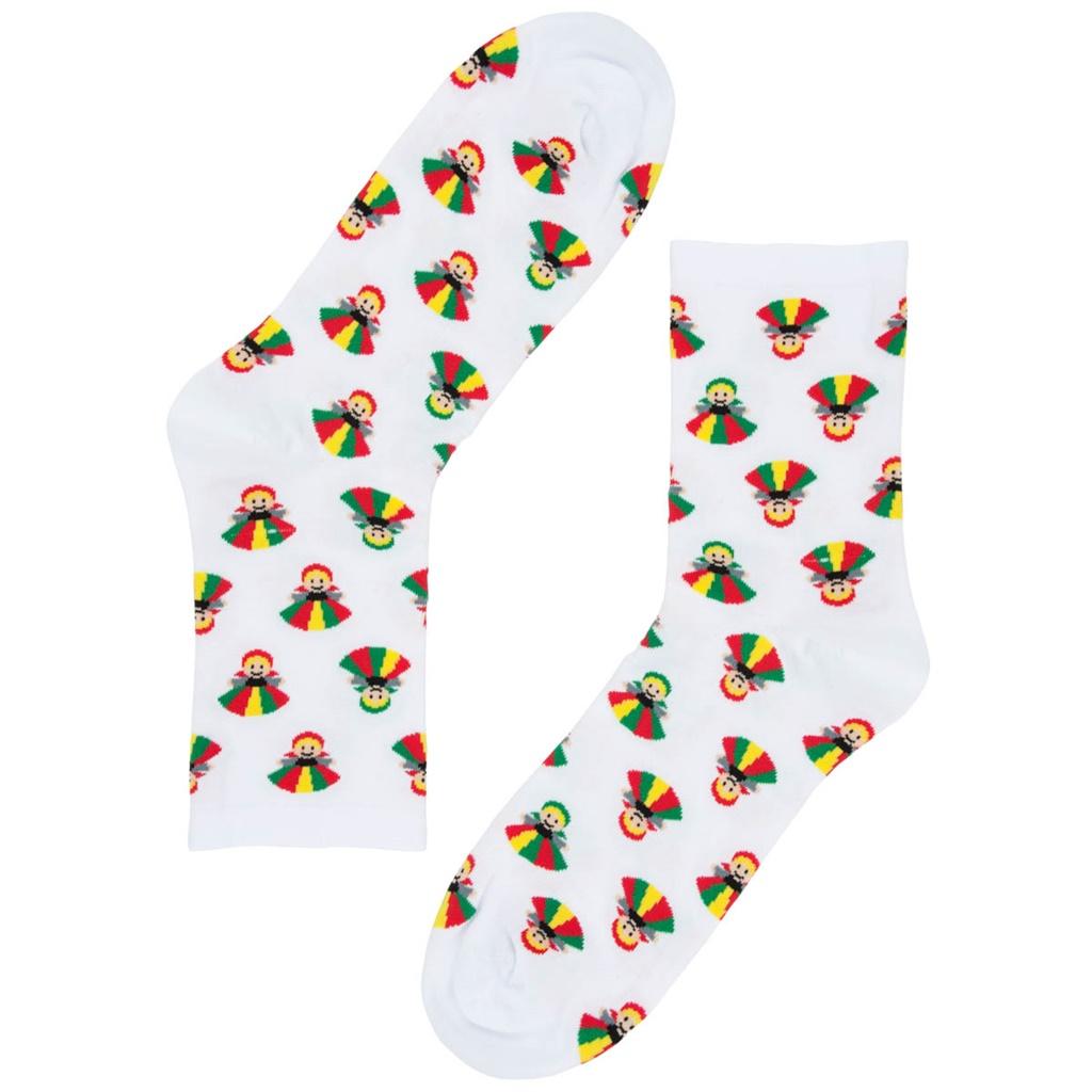 Skarpetki z ludowym wzorem łowiczanki - białe: z nadrukowanymi łowiczankami na białym materiale,wzór wyszyty jest na całej skarpetce