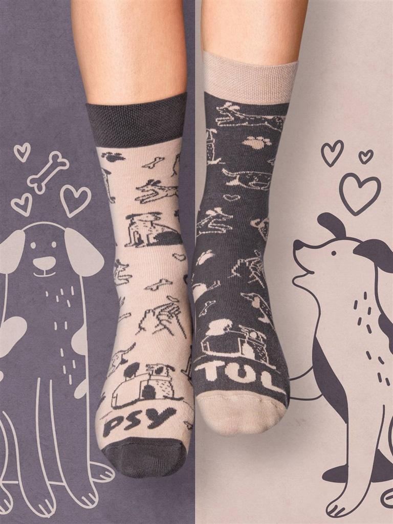 Nie od dziś wiadomo, że pies to najlepszy PSYJACIEL człowieka. A wyrazem tej wyjątkowej PSYJAŹNI jest wzajemne PSYTULANIE! Śmieszne skarpetki PSYTUL to idealny pomysł na prezent dla psiarza. Uwaga - nie opędzi się od czworonogów! Kolorowe skarpetki PSYTUL zostały uszyte od A do Ż w Polsce z najwyższej jakości bawełny czesanej. W sam raz na prezent dla miłośnika psów! Dla waćpani i waćpana Skład: 80% najwyższej jakości bawełna czesana, 17% poliamid (dodaje wytrzymałości), 3% elastan (skarpetka lepiej dopasowuje się do stopy) Nieuciskający ściągacz i komfortowy płaski szew na palcach Wyprodukowano w Polsce Prać zawsze na lewej stronie w temperaturze maks. 40C, nie prasować