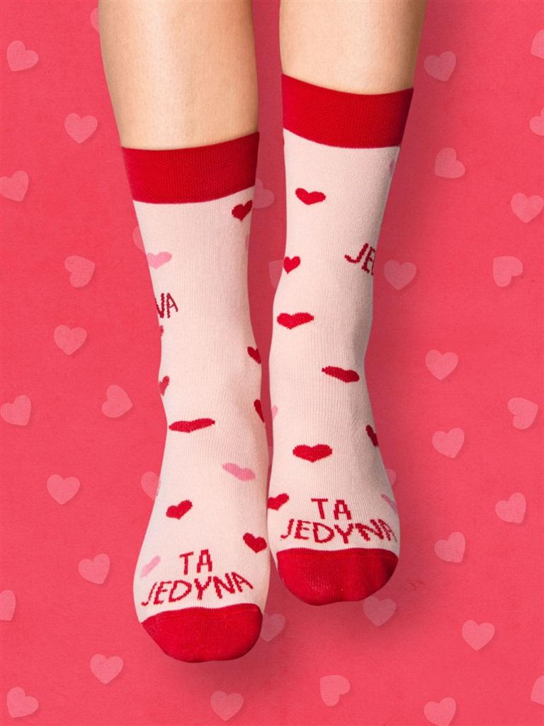 Na zawsze razem - moja ci ona! Śmieszne skarpetki TA JEDYNA, jak sama nazwa wskazuje, to idealny pomysł na prezent walentynkowy dla dziewczyny. Równie dobrze sprawdzą się jako oryginalny prezent dla niej z okazji rocznicy związku. Kolorowe skarpetki dla dziewczyny TA JEDYNA zostały uszyte od A do Ż w Polsce z najwyższej jakości bawełny czesanej. Prezent walentynkowy dla dziewczyny jak ta lala! Podaruj jej te śmieszne skarpetki. Dla waćpani Skład: 80% najwyższej jakości bawełna czesana, 17% poliamid (dodaje wytrzymałości), 3% elastan (skarpetka lepiej dopasowuje się do stopy) Nieuciskający ściągacz i komfortowy płaski szew na palcach Wyprodukowano w Polsce Prać zawsze na lewej stronie w temperaturze maks. 40 C, nie prasować.