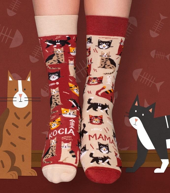 Czy KOCIA MAMA to najważniejsza rola w Twoim życiu? Jeśli tak, nasze skarpety stworzyliśmy z myślą o Tobie! Uroczy wzór w kotki (zarówno w kocie łby, jak i kocie grzbiety) to niezbędny dodatek do stylizacji każdej kociary. Z pewnością doceni go także Twój grymaśny pupil! Skarpety KOCIA MAMA, jak sama nazwa wskazuje, polecają się na prezent dla każdej kociej mamy. Uwaga – nie opędzisz się od kotów! Dla waćpani Skład: 80% najwyższej jakości bawełna czesana, 17% poliamid (dodaje wytrzymałości), 3% elastan (skarpetka lepiej dopasowuje się do stopy) Nieuciskający ściągacz i komfortowy płaski szew na palcach Wyprodukowano w Polsce Prać zawsze na lewej stronie w temperaturze maks. 40° C, nie prasować.