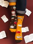 Skarpety KSIĄŻKA I KAWA to nieodłączny element stylizacji każdego kawosza i mola książkowego! Czy może być lepsze połączenie niż dobra książka, aromatyczna kawa i pyszne ciastko? Wszystkie te elementy znajdziesz na asymetrycznych skarpetkach, które idealnie sprawdzą się jako prezent dla fana literatury. Pomarańczowo-brązowe skarpety asymetryczne Skład: 80% najwyższej jakości bawełna czesana, 17% poliamid (dodaje wytrzymałości), 3% elastan (skarpetka lepiej dopasowuje się do stopy) Nieuciskający ściągacz i komfortowy płaski szew na palcach Idealne skarpety na prezent dla mola książkowego i kawosza Prać zawsze na lewej stronie w temperaturze maks. 40° C, nie prasować Wyprodukowano w Polsce.
