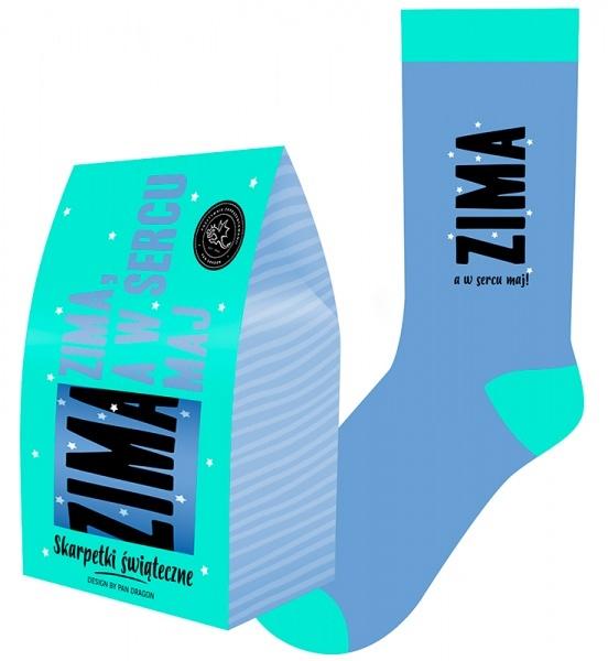 Zestaw wygodbnych skarpet z zimowym wzorem, zapakowanych w elegancki kartonik.