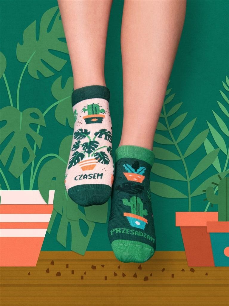 Każdy zna kogoś, kto czasem przesadza. Istnieją jednak jednostki, dla których przesadzanie stało się sposobem na życie. Jak rozpoznać objawy tego schorzenia? To bardzo proste: przestrzeń, w której mieszkają, niewiele różni się od lasów tropikalnych. Skarpetki stopki CZASEM PRZESADZAM z motywem roślinnym polecają się na prezent dla florystki, miłośniczki roślin doniczkowych oraz królowej dżungli. Dla waćpani i waćpana Skład: 80% najwyższej jakości bawełna czesana, 17% poliamid (dodaje wytrzymałości), 3% elastan (skarpetka lepiej dopasowuje się do stopy) Nieuciskający ściągacz i komfortowy płaski szew na palcach Idealne na prezent dla miłośniczki roślin Wyprodukowano w Polsce Prać zawsze na lewej stronie w temperaturze maks. 40 C, nie prasować.