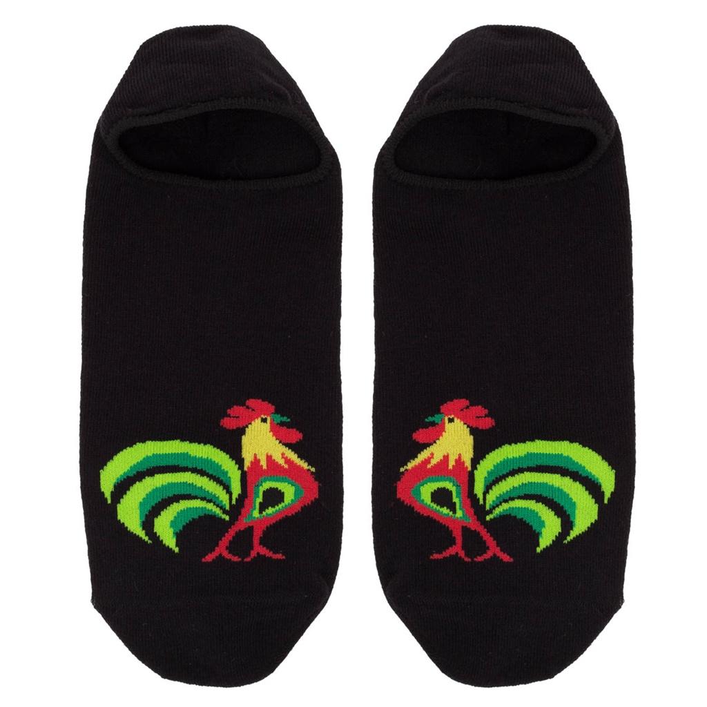 Łowickie skarpety stopki damskie z kogutem - czarne: z nadrukowanym kogucim motywem na czarnym materiale,wzór wyszyty na wierzchu stopy tuż nad palcami,wykonane z przewiewnego materiału najwyższej jakości bawełna,skład: 67% bawełna, poliamid 25%, polipropylen 5%, elastan 3%,