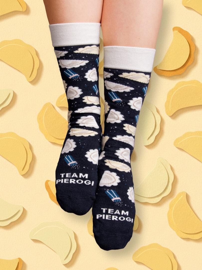 Pierogi - narodowy skarb, symbol gościnności i powód, dla którego nikt nie wychodzi głodny z polskiego domu. Skarpety PIEROGI to ukłon w stronę wszystkich, którzy wiedzą, że prawdziwe szczęście zaczyna się od talerza - albo od stóp w ciepłych bawełnianych skarpetach.