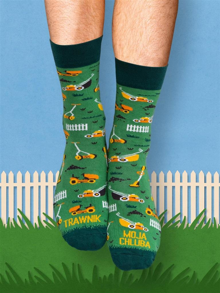 Samo się nie skosi! Czy są tutaj miłośnicy ostrego cięcia i specjaliści ds. murawy? Śmieszne skarpetki TRAWNIK - MOJA CHLUBA zostały stworzone z myślą o wszystkich, którzy mają słabość do trawy. Te bawełniane skarpety w rozkosznie zielonym kolorze idealnie sprawdzą się jako pomysł na prezent urodzinowy dla taty, brata czy kolegi, który jest zapalonym kosiarzem. Nie od dziś wiadomo, jak wielką wartość w gospodarstwie domowym stanowi człowiek prawy do koszenia trawy! Kolorowe skarpetki TRAWNIK - MOJA CHLUBA to najlepszy prezent dla ogrodnika. Sprawdzą się także jako prezent dla taty z okazji Dnia Ojca czy chłopaka na Dzień Mężczyzn. Te śmieszne skarpetki aż się proszą o ich zakoszenie! Dla waćpani i waćpana Skład: 80% najwyższej jakości bawełna czesana, 17% poliamid (dodaje wytrzymałości), 3% elastan (skarpetka lepiej dopasowuje się do stopy) Nieuciskający ściągacz i komfortowy płaski szew na palcach Wyprodukowano w Polsce Prać zawsze na lewej stronie w temperaturze maks. 40 C, nie prasować.