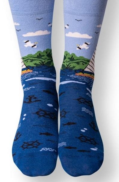 Hej, żegluj, żeglarzu! Czy kiedykolwiek marzyłeś o tym, by wypłynąć na szerokie wody, poczuć wiatr we włosach i zapach soli morskiej? Teraz możesz to zrobić... przynajmniej w wyobraźni! Skarpety ŻAGLE przeniosą Cię prosto na pokład łodzi. Dla tych, którzy kochają jeziora, morza i życie na łajbie, te skarpetki są idealnym dodatkiem do garderoby. Uroku dodaje im wyjątkowy wzór z fragmentem szanty. Sprawi, że poczujesz się jak prawdziwy kapitan gotowy na żeglarskie wyzwania. ""Gdzie ta keja, a przy niej ten jacht... Gdzie ta koja wymarzona w snach?"" Już wiesz - na Twoich stopach! To idealny prezent dla żeglarza, marynarza, a nawet wędkarza. Załóż skarpety ŻAGLE i ruszaj w morską podróż pełną przygód! Dla miłośnika żeglugi Skład: 80% najwyższej jakości bawełna czesana, 17% poliamid (dodaje wytrzymałości), 3% elastan (skarpetka lepiej dopasowuje się do stopy) Nieuciskający ściągacz i komfortowy płaski szew na palcach dealny prezent dla kolegi i koleżanki Wyprodukowano w Polsce Prać zawsze na lewej stronie w temperaturze maks. 40C, nie prasować.