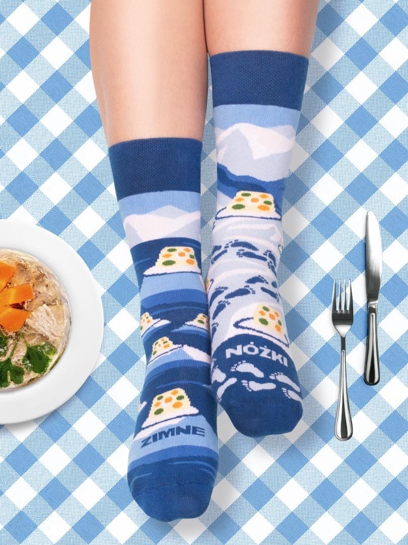 Marchewka czy groszek? Oto jest pytanie! ZIMNE NÓŻKI to zmora zmarzluchów i gości u cioci na imieninach. Z myślą o nich stworzyliśmy śmieszne skarpetki przywołujące na myśl mroźne zimy w czasach PRL-u i tamte prywatki. Kolorowe skarpetki ZIMNE NÓŻKI to idealny prezent świąteczny dla zmarzlucha i miłośnika kuchni polskiej. Podaruj je osobie, której zimno w stópki. Bawełniane skarpety w zimne nóżki zostały uszyte od A do Ż w Polsce. Sprawdzą się jako uniwersalny prezent dla przyjaciela, zwłaszcza z okazji świąt. Pomysł na prezent dla zmarzlucha jak znalazł! Dla waćpani i waćpana Skład: 80% najwyższej jakości bawełna czesana, 17% poliamid (dodaje wytrzymałości), 3% elastan (skarpetka lepiej dopasowuje się do stopy) Nieuciskający ściągacz i komfortowy płaski szew na palcach Wyprodukowano w Polsce Prać zawsze na lewej stronie w temperaturze maks. 40° C, nie prasować.