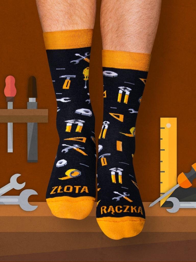 Marzysz o naprawieniu świata? Zacznij od małych kroków - choćby od założenia naszych skarpet ZŁOTA RĄCZKA stworzonych z myślą o tych, którzy z pasją i precyzją potrafią ożywić nawet najbardziej kapryśne urządzenie. Te skarpetki to hołd dla mistrzów fachu, którzy niczym rzeźbiarze z narzędziami w dłoniach tworzą codzienne arcydzieła. To idealny podarunek na Dzień Chłopaka i każdą inną okazję, by wyrazić wdzięczność i uznanie dla złotych rąk, które naprawiają rzeczywistość. Niech te skarpetki przypominają obdarowanemu, że jego umiejętności są warte więcej niż złoto. Skarpetki ZŁOTA RĄCZKA to doskonały prezent dla męża i ojca. Złote ręce, złote serce - podkreśl wyjątkowość tego, kto je nosi, dzięki skarpetkom ZŁOTA RĄCZKA. Dla mistrza napraw Skład: 80% najwyższej jakości bawełna czesana, 17% poliamid (dodaje wytrzymałości), 3% elastan (skarpetka lepiej dopasowuje się do stopy) Nieuciskający ściągacz i komfortowy płaski szew na palcach Wyprodukowano w Polsce Prać zawsze na lewej stronie w temperaturze maks. 40 C, nie prasować.
