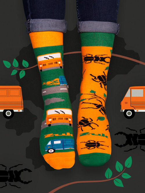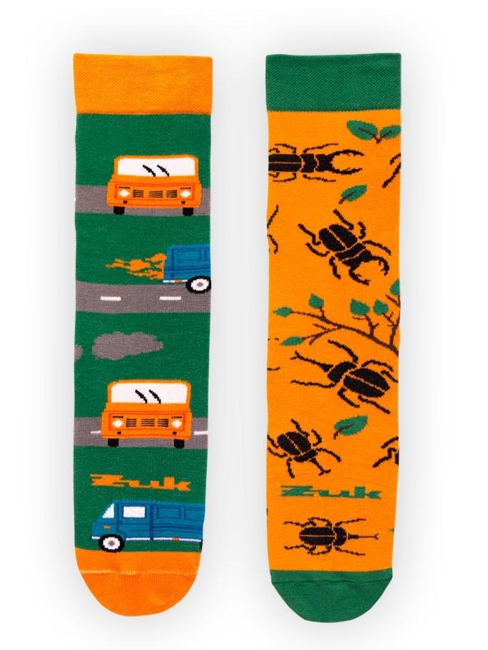 Skarpety w żuki to oryginalne połączenie legendy polskiej motoryzacji, czyli produkowanego w Lublinie FSC Żuka, oraz sympatycznych owadów z rodziny żukokształtnych. Skarpety ŻUK doskonale sprawdzą się jako prezent nie tylko dla fana motoryzacji, ale również dla wielbiciela gier słownych. Skarpety w żuki z pewnością pomogą także w miłosnych podbojach, bo jak pisał Jan Brzechwa: Stąd nauka Jest dla żuka: Żuk na żonę żuka szuka. Dla waćpani i waćpana Skład: 80% najwyższej jakości bawełna czesana, 17% poliamid (dodaje wytrzymałości), 3% elastan (skarpetka lepiej dopasowuje się do stopy) Nieuciskający ściągacz i komfortowy płaski szew na palcach Wyprodukowano w Polsce Prać zawsze na lewej stronie w temperaturze maks. 40° C, nie prasować.