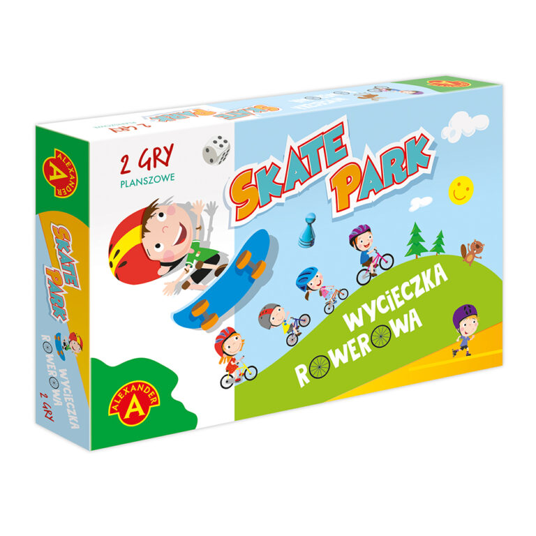 SKATE PARK to miejsce gdzie możesz się wyszaleć sprawdzając swoją sprawność i możliwości w akrobacjach na torze. Macie do wyboru jazdę na rowerze, rolkach, hulajnodze lub deskorolce. Umiejętność wykonywania ewolucji jest zastąpiona w grze umiejętnością, układania stosu z plastikowych żetonów. Ten, kto w zawodach wykaże się większą zręcznością, opanowaniem i cierpliwością zdobywając określoną liczbę żetonów zostanie zwycięzcą - jeśli przy odrobinie szczęścia ukończy jazdę bez straty wymaganych punktów. By tak się nie stało musisz uważać, by się nie przewrócić lub nie przemęczyć, bo konkurenci tylko czekają na Twój błąd.