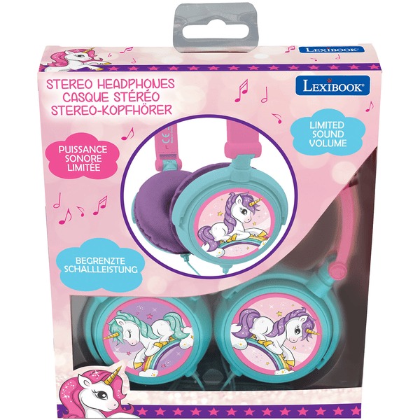 Opakowanie Składane słuchawki stereo przewodowe Jednorożec z zabezpieczeniem głośności dla dzieci Lexibook HP017UNI