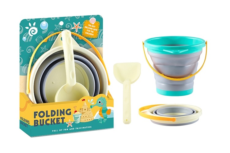 W zestawie: wiaderko, łopatka, wym. wiaderka po rozłożeniu: 19 x 17 x 19 cm., wym. opakowania: 20,5 x 26 x 6 cm., 3+